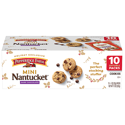 Take classic cookies on-the-go with snack packs of Pepperidge Farm Nantucket Mini Chocolate Chip Cookies. Nantucket mini cookies are filled with chips of rich dark chocolate and are made with real eggs and vanilla extract. With 4 cookies in each pack and 10 packs per box, experience the kind of cookie that's more than a treat from anywhere. Have A Little Taste™